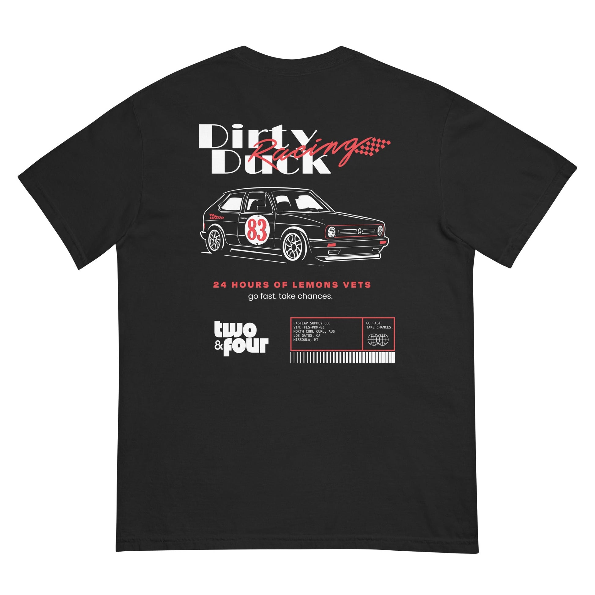 Inspired by the #83 beater that refuses to die, the Dirty Duck Racing heavyweight tee is built to take a beating and still look good. Soft, structured, and tough as nails—just like the GTI.