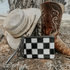 Upgrade your accessories with the Stockyard Checkered Cowhide Wristlet. Featuring a bold checkered cowhide front paired with a sleek leather back, this pouch combines toughness with elegance. Its detachable wristlet allows for flexible wear, and the leather fringe tassel on the zipper adds a playful detail. Ideal for carrying your daily essentials in style, this wristlet is a standout piece that ensures you make an impression wherever you carry it.