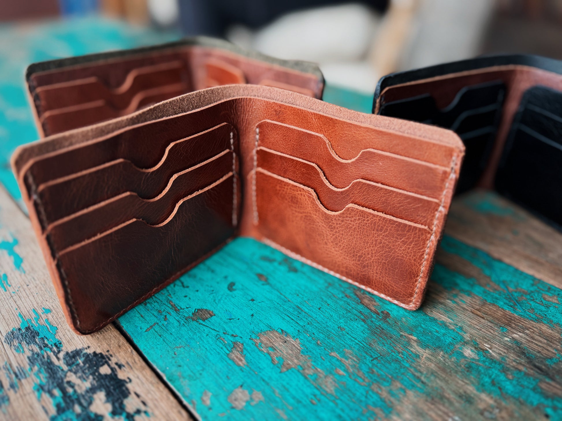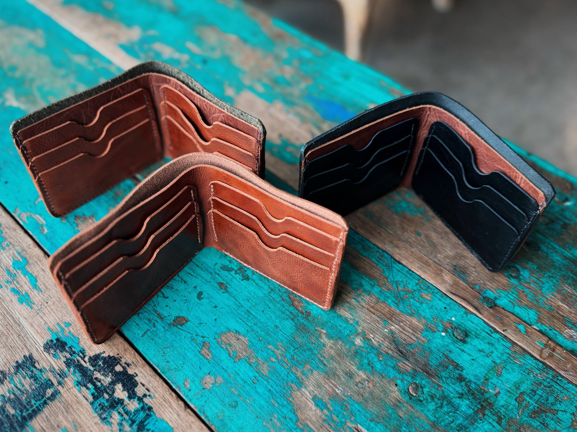 Here’s your classic billfold. Made from high quality Horween chromexcel leather to minimize weight and bulk. Six card slots and a full bill pocket.